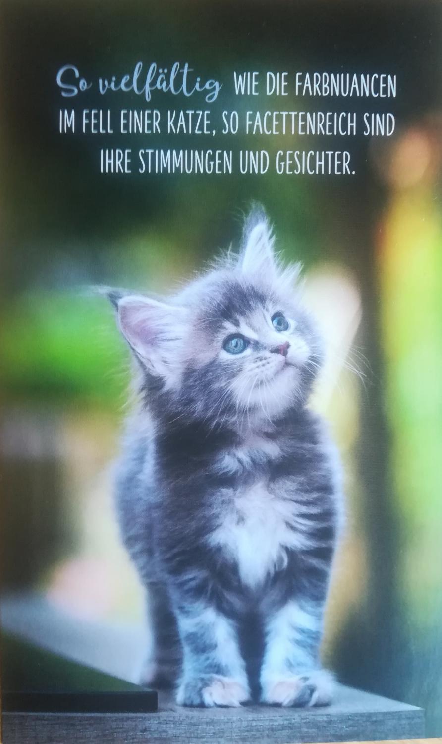 Katzen schlafen ... überall, auf jedem Tisch, auf jedem Stuhl, auf dem Klavier, der Fensterbank, in der Mitte, am Rand, in der Schublade, im leeren Schuh, auf jedem warmen Schoß, eingezwängt in einen Pappkarton, im Kleiderschrank zwischen deinen Sachen - irgendwo! Es ist ihnen egal, Katzen schlafen einfach überall!(Eleanor Farjeon)