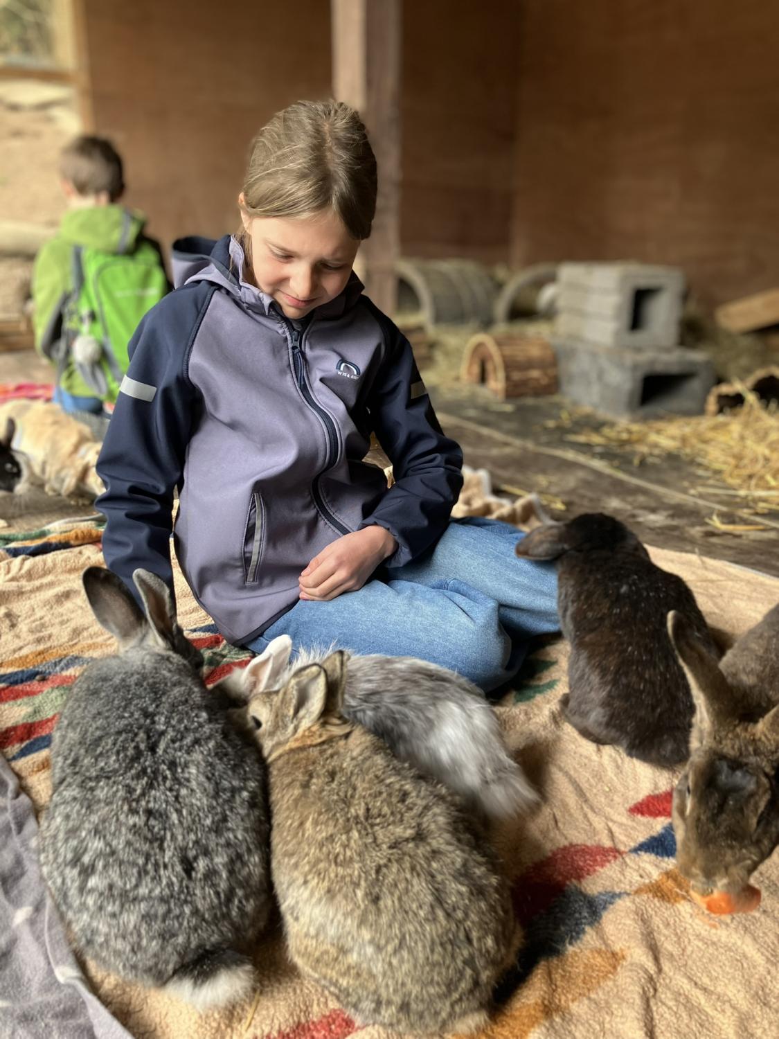 Am zweiten Tag wurde es dann richtig lebendig: Wir haben einen liebevoll geführten, privaten Tierlebenshof in der Nähe von Daun besucht. Dort durften die Kinder viele glückliche Langohren und Meerschweinchen kennenlernen, beobachten – und das Gelernte direkt in der Praxis vertiefen.