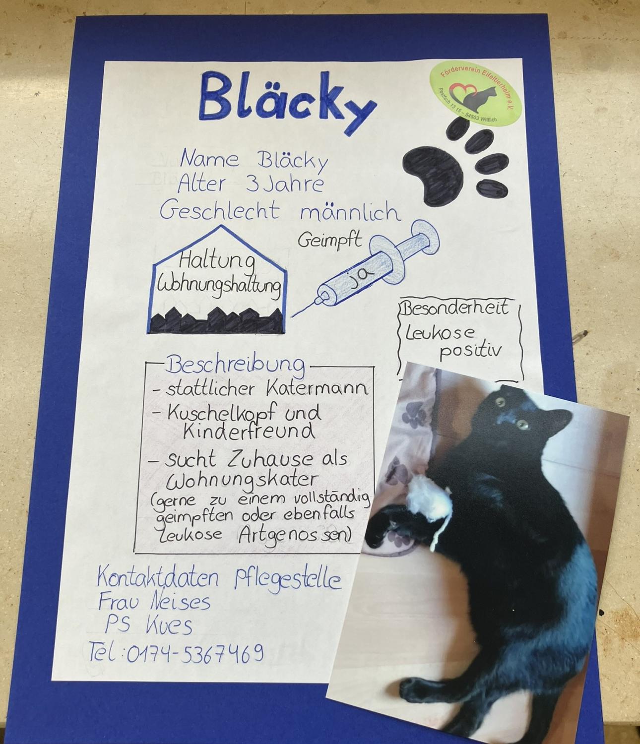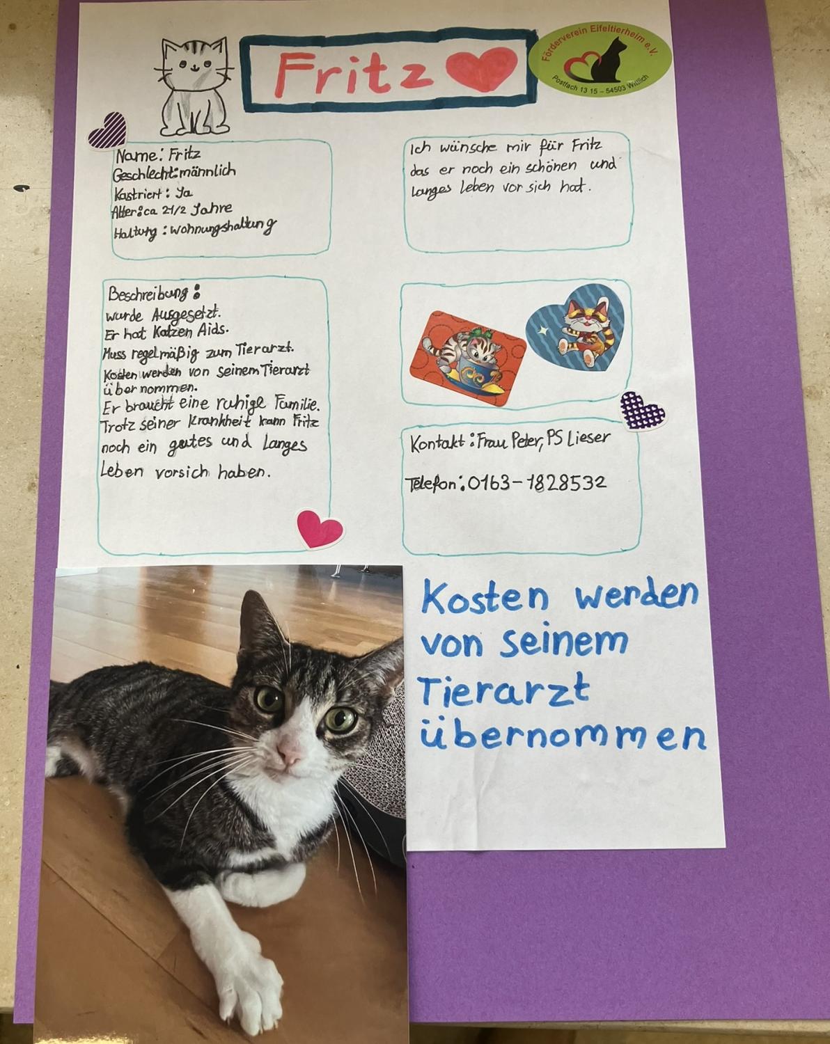 Für die Katzen, die auf den Pflegestellen des Förderverein Eifeltierheim e.V. auf ein Zuhause warten, haben die Kinder der Tierschutzgruppe und einige Teilnehmer des Katzendiploms Steckbriefe gemacht.