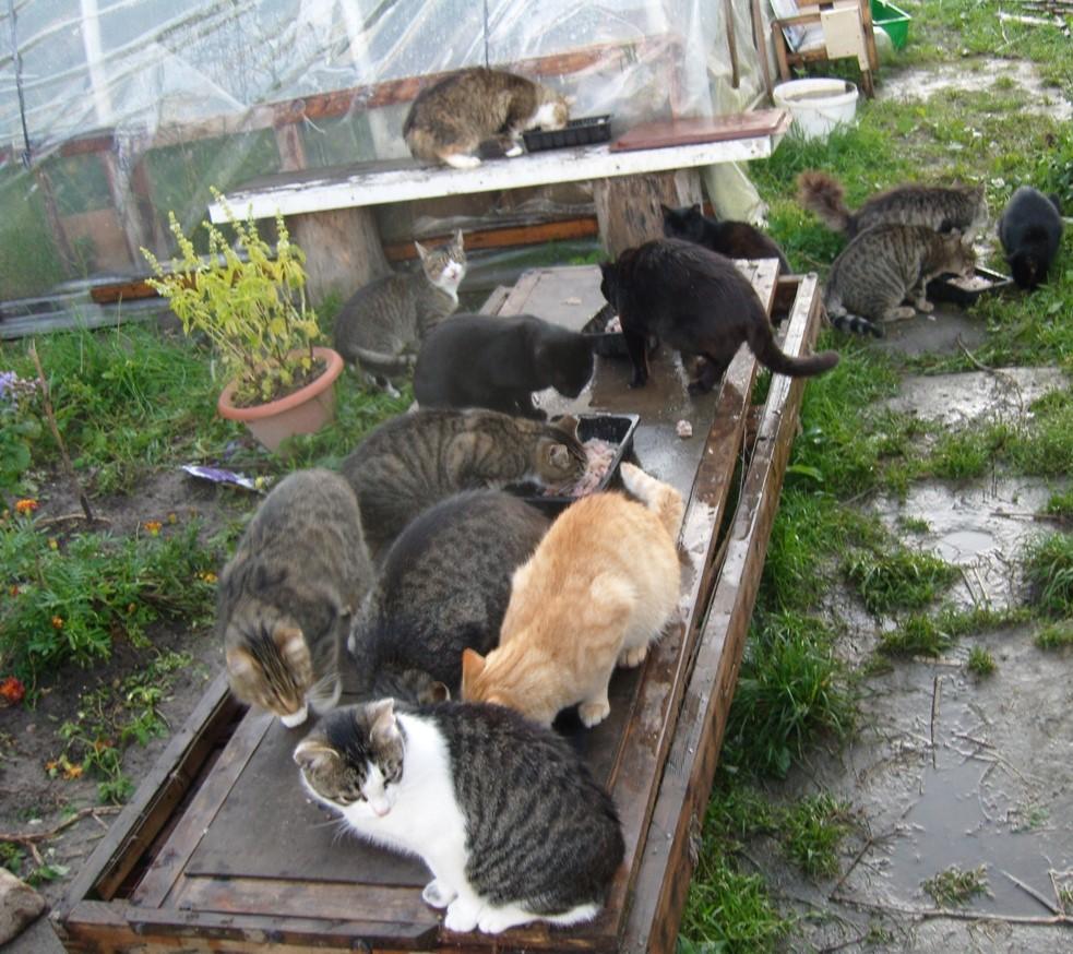 - Versorgung von verwilderten Fellträgern von verantwortungslosen Ex-Katzenbesitzern und beratungsresistenten Bauern, die kaum Vermittlungschancen haben. Kastrationen, eingerichtete Futterstellen und medizinische Versorgung schlagen auch hier ein großes Loch in die Tierschutzkasse.