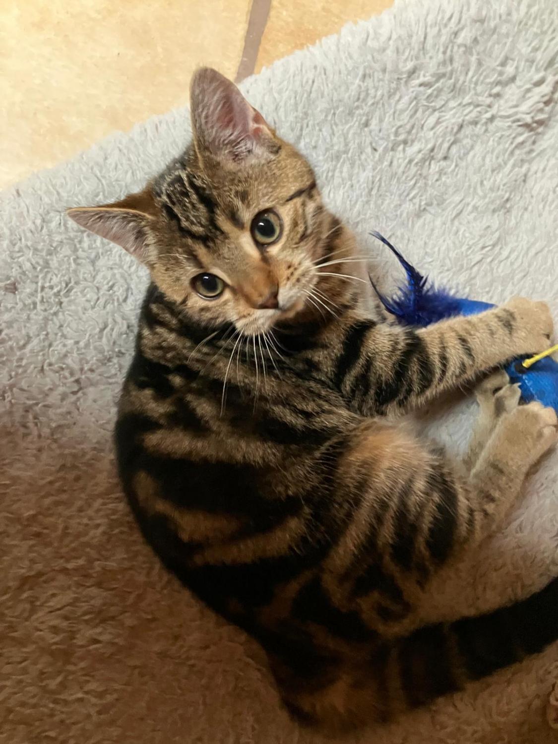 Beschreibung: Das trollige Katzenkind ABBEY ist sehr verspielt, kuschelfreudig und neugierig, braucht aber ein ruhiges, stressfreies Umfeld. Nachdem ihre beiden Schwestern ein Zuhause gefunden haben, wünscht sich das Samtpfötchen sehnlichst eine eigene Familie (nur erwachsene Kinder) mit einem sozialen pelzigen Spielkameraden, die das Tigermädchen adoptiert. ABBEY ist gechipt und geimpft. Bitte erste Anfragen per WhatsApp.