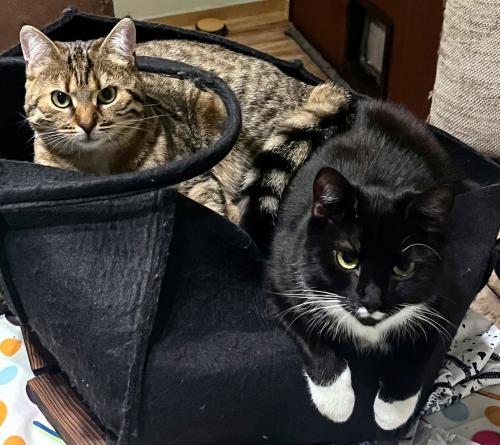 Die beiden Kater sind sehr lieb und verkuschelt. Die Wohnungstiger hängen sehr aneinander und werden nur zusammen vermittelt. Sie sind gechipt, kastriert und selbstverständlich stubenrein.